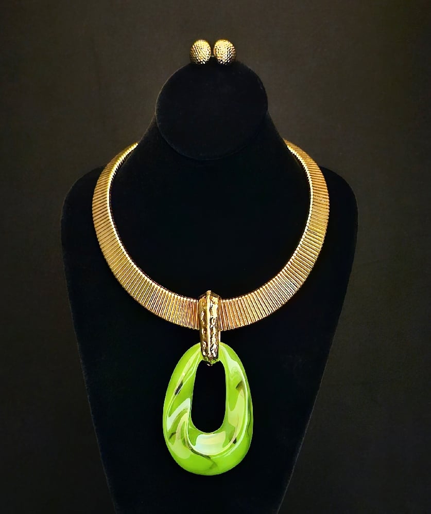 ... gold ridged & marbleized green fancy necklace set. 11" long. Charmingโผ๏ธ๐ ๐ ๐ ๐
