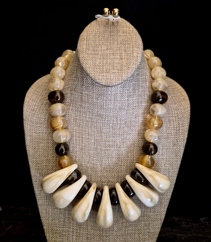... marbled brown & beige necklace set. Adjustable & charming!! πΏπβ€οΈ